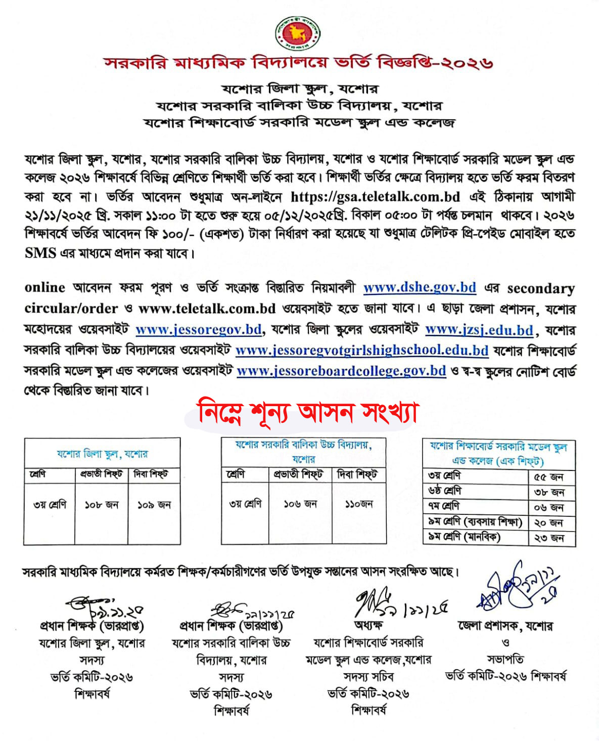 ভর্তির বিজ্ঞপ্তি-২০২৬ |